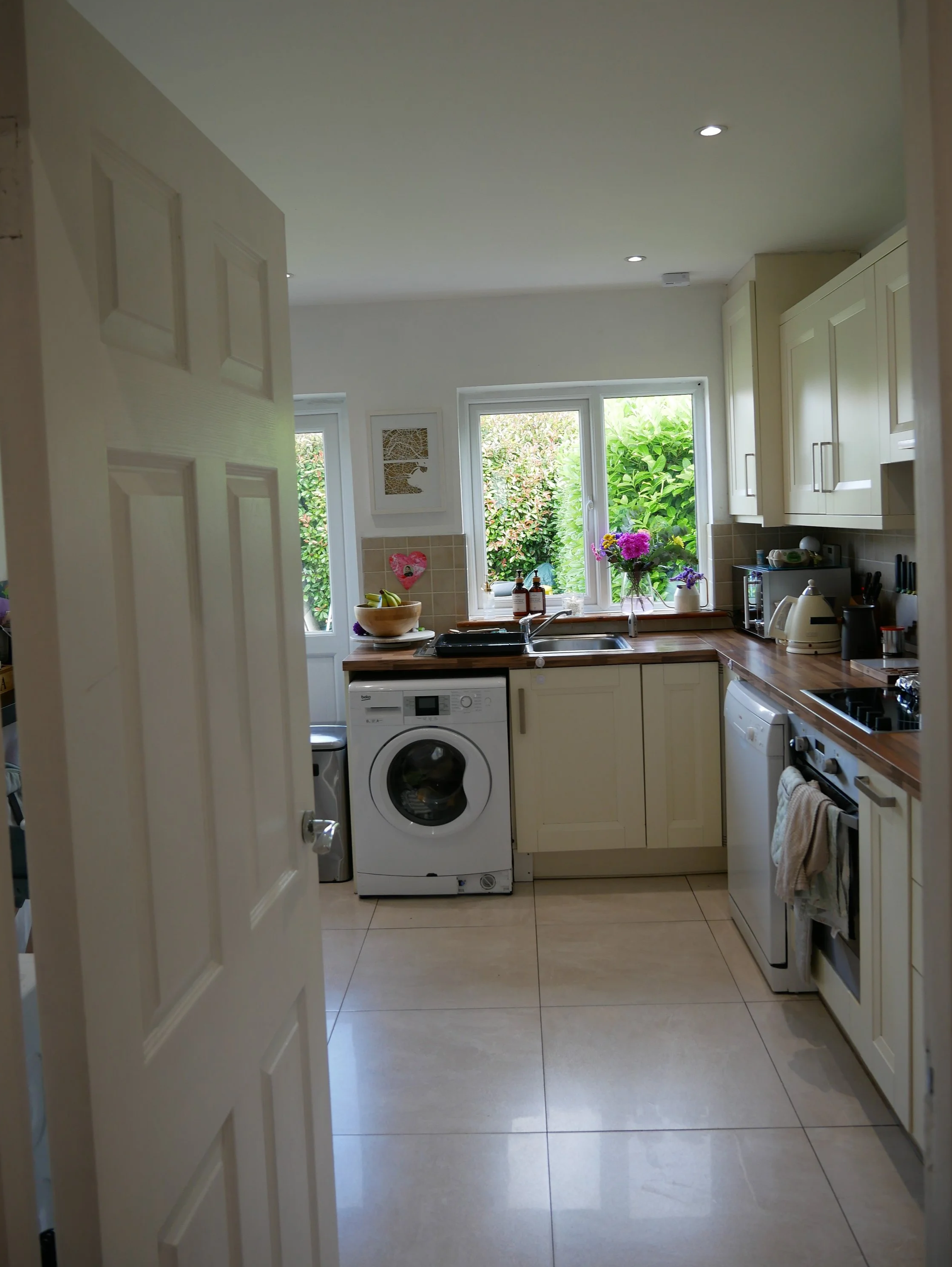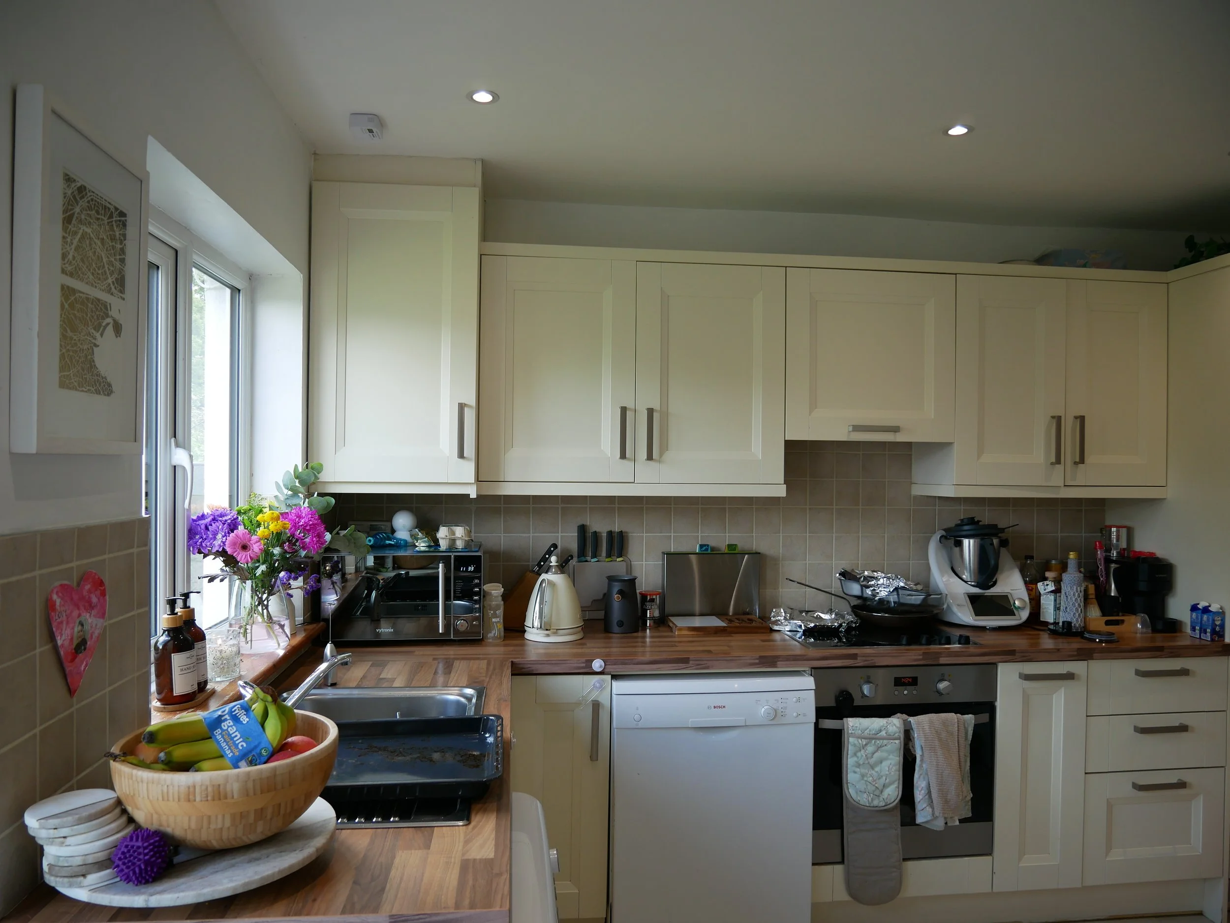 Led by Lou Joia Studio in collaboration with an architect, structural engineer and a large team of builders, the renovation reflects a shared commitment to thoughtful design and expert execution. From the bespoke kitchen island with its marble waterfall effect to the smoked glass doors and oak veneer cabinetry, every element was carefully considered to create an interior that feels both elevated and enduring.