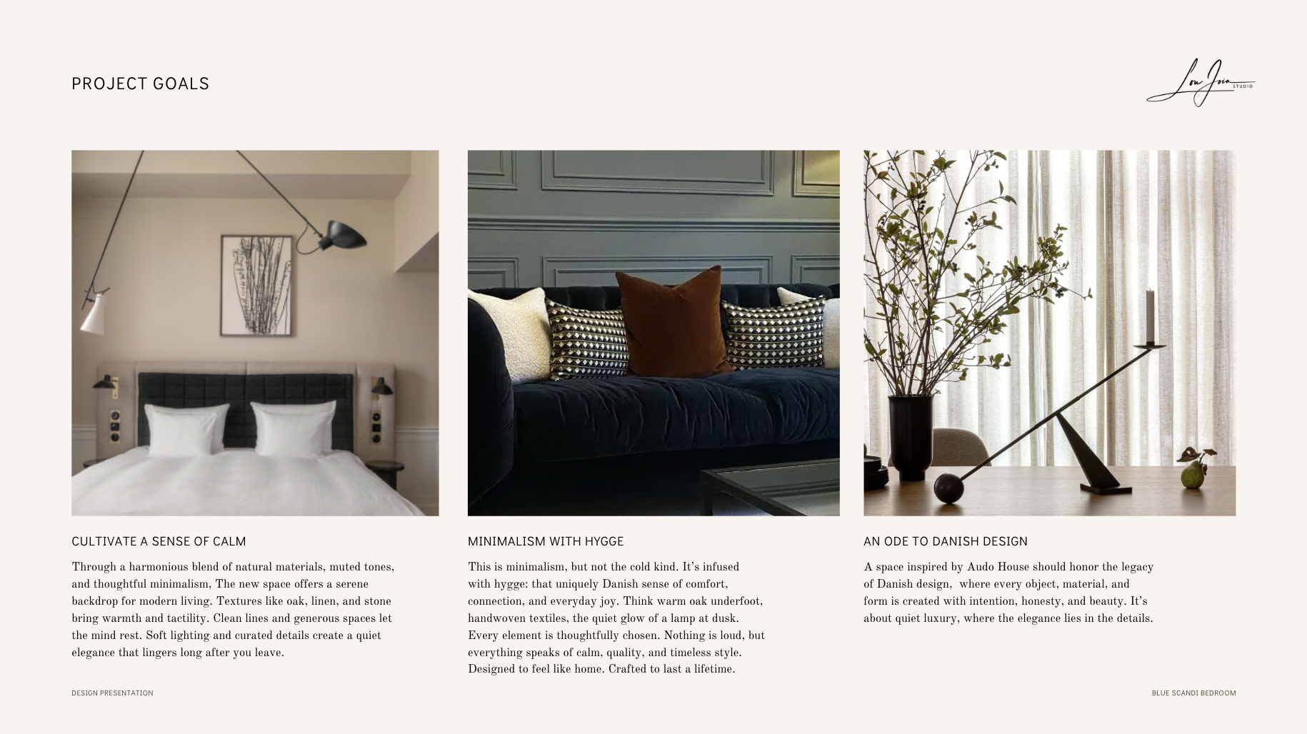 The objective was to design a serene and inviting bedroom rooted in the Scandi & Hygge principles.